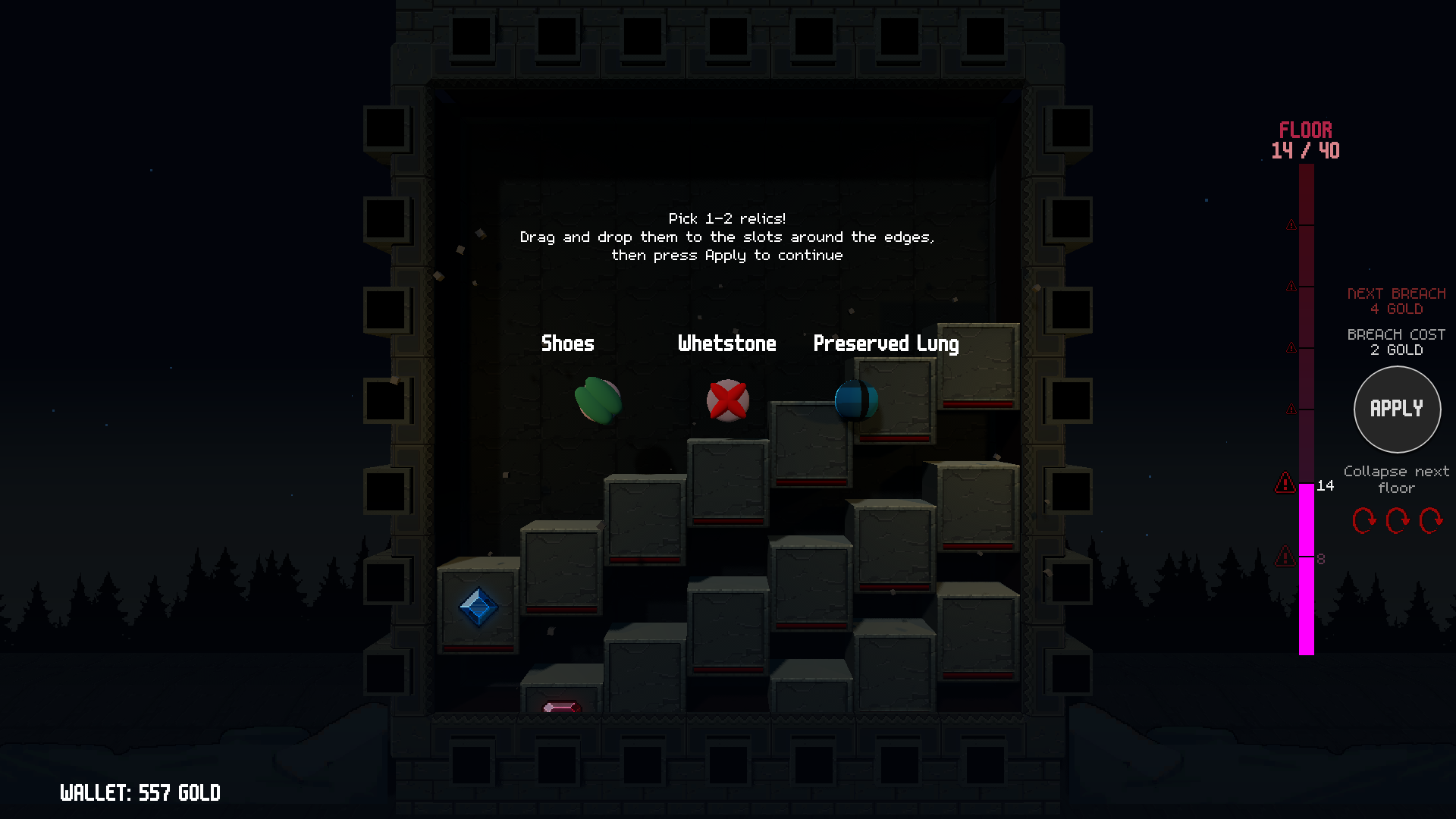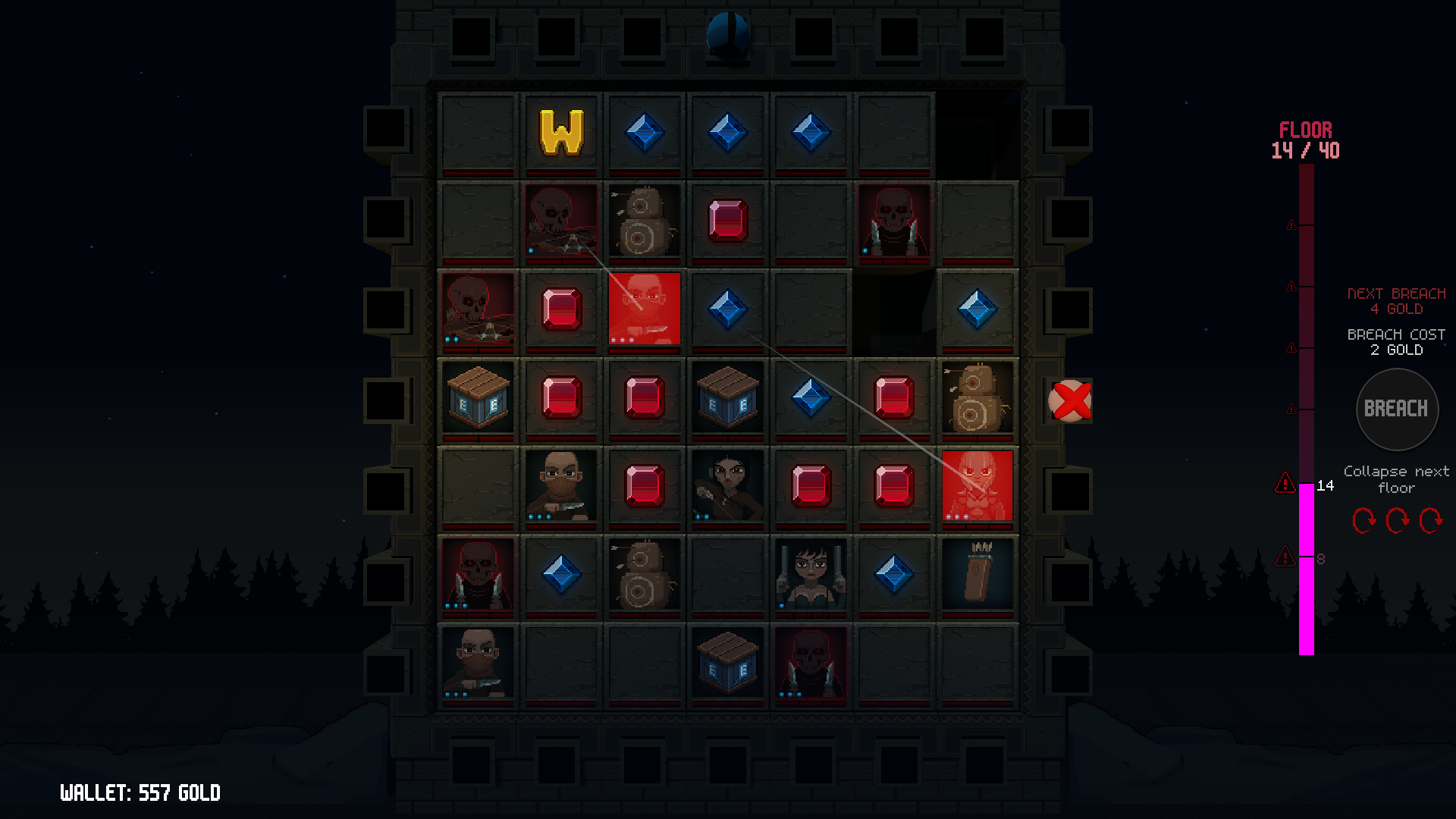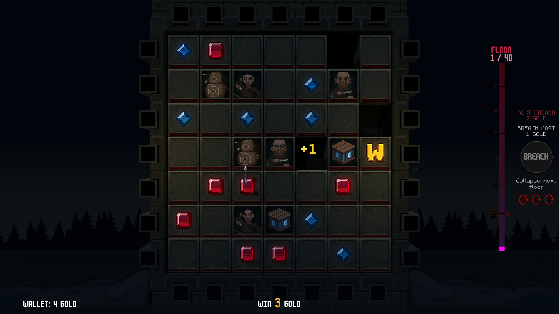 Breach castle floors -> Find relics -> Make gold -> Buy symbols -> Repeat
